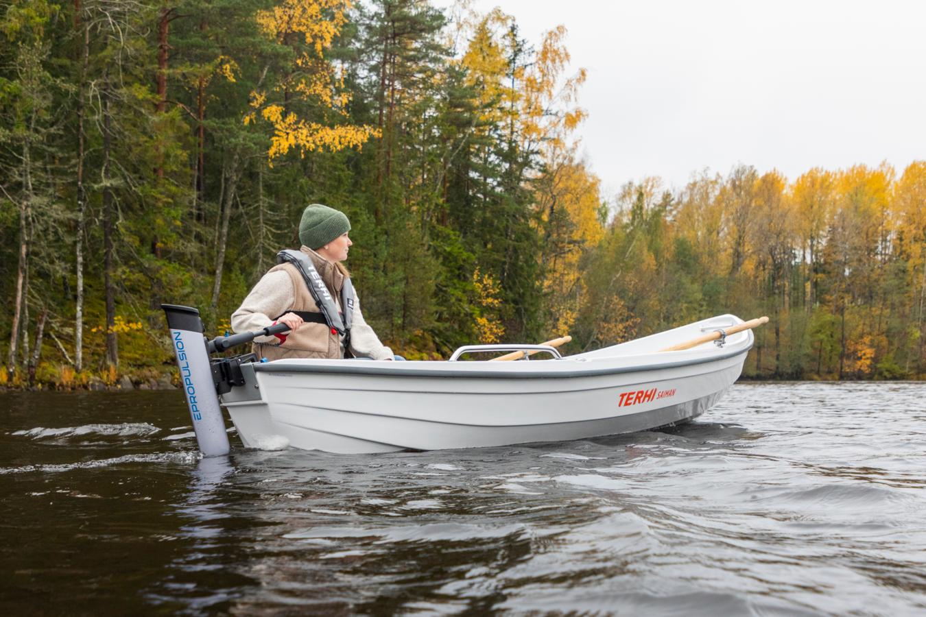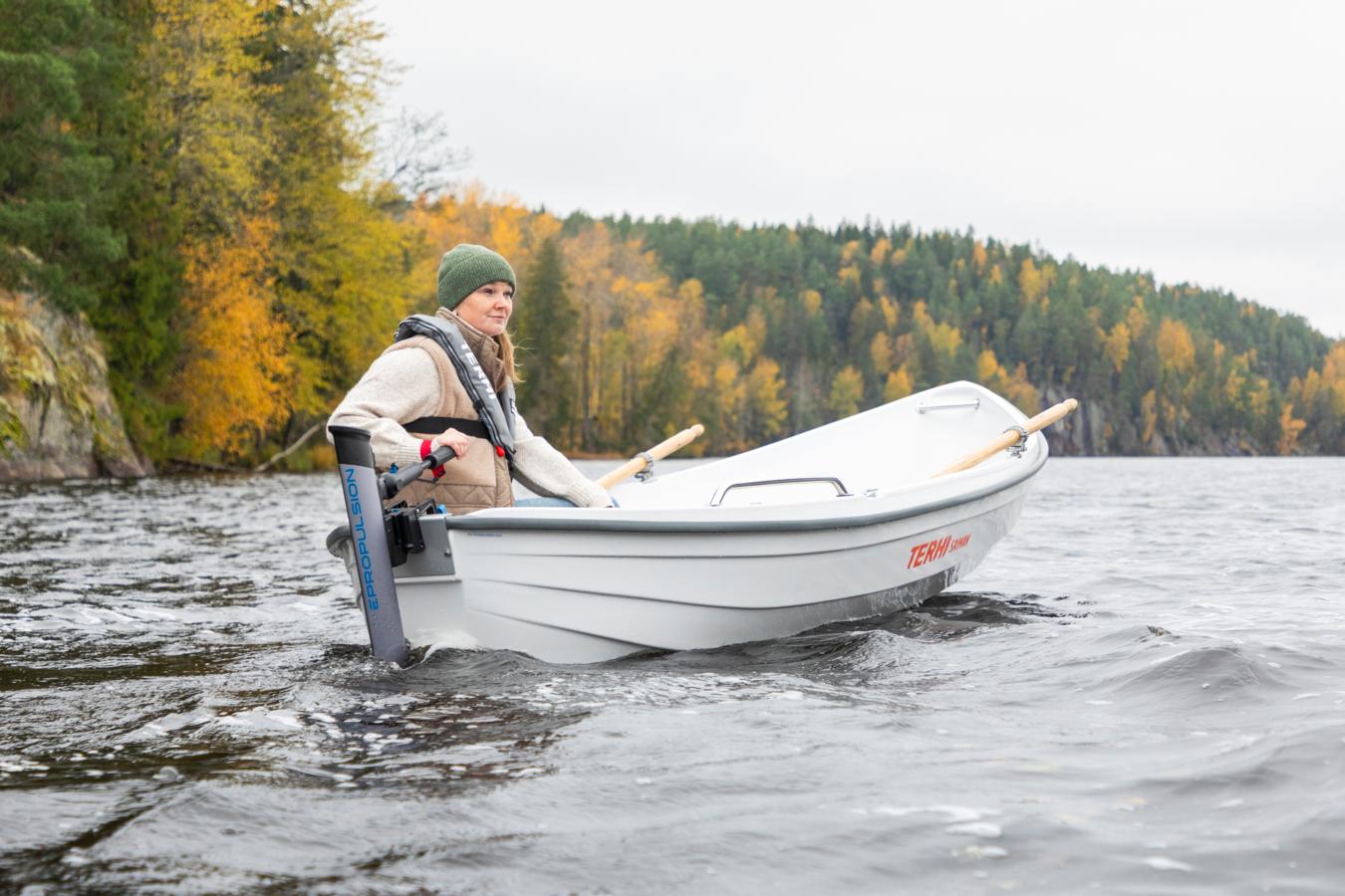 Kevyt soutuvene kulkee eLiten avulla vaivattomasti ja mukavan äänettömästi.